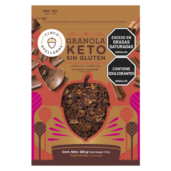 Te invitamos a disfrutar nuestra Granola KETO Choco Canela llena de beneficios para ti en una bolsa de 320 gramos resellable, perfecta para mantener la crocancia de tu granola.